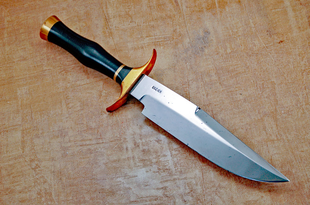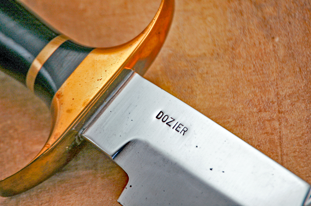 This Fighting Bowie, crafted by Bob in Louisiana in the 1960s, is an exceptionally rare piece of his early work — one of only two ever made. Its black micarta scales add a bold, period-correct touch, but its true intrigue lies in its counterpart: the only other knife of this design was commissioned by a woman, an uncommon request for the era. This knife isn’t just rare — it’s a tangible slice of Dozier history.